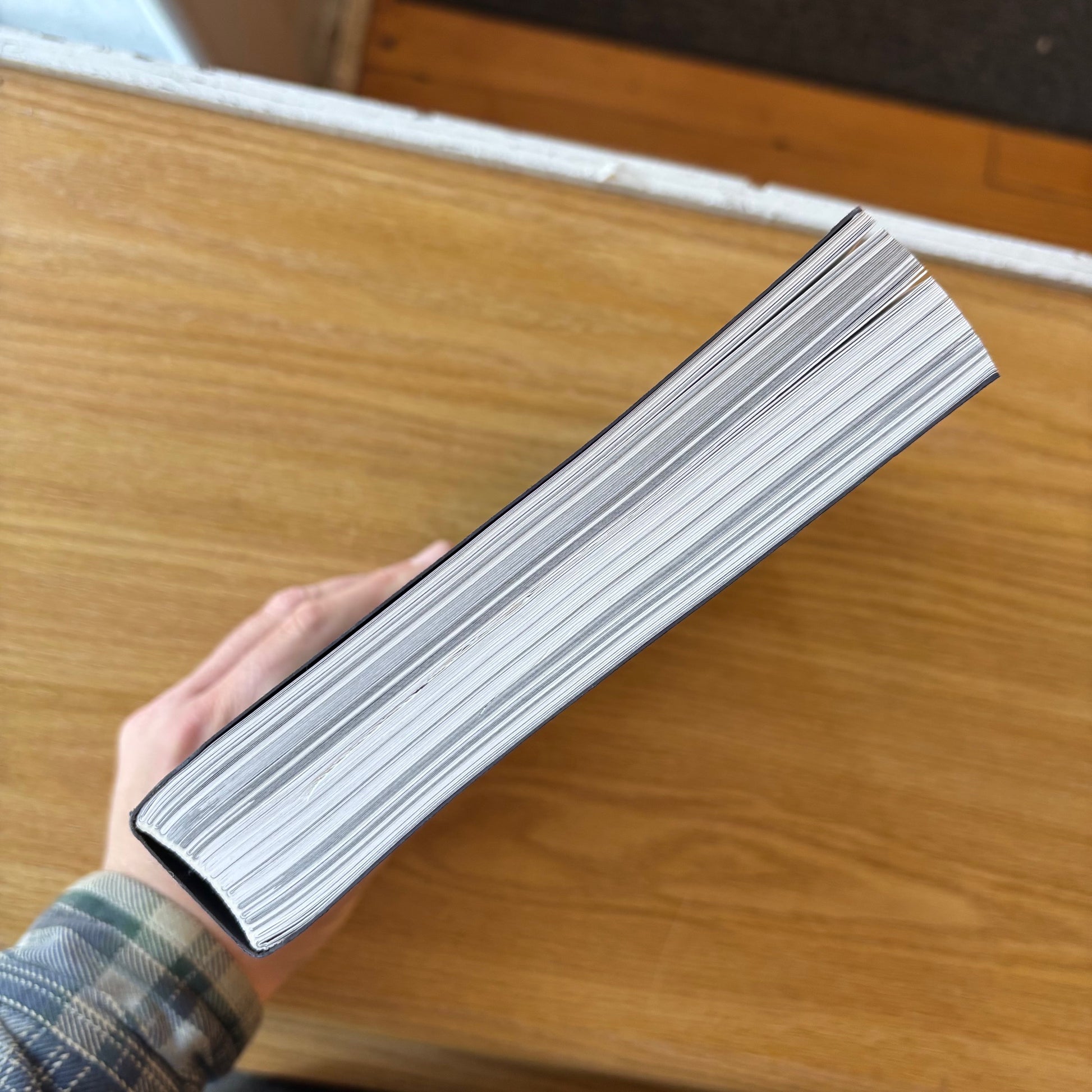 Slight reading curl to binding, light shelfwear to covers, binding somewhat skewed from leaning on shelf. Small dent at top page edges. Overall in clean shape, near VG+. Already out of print and getting scarce.