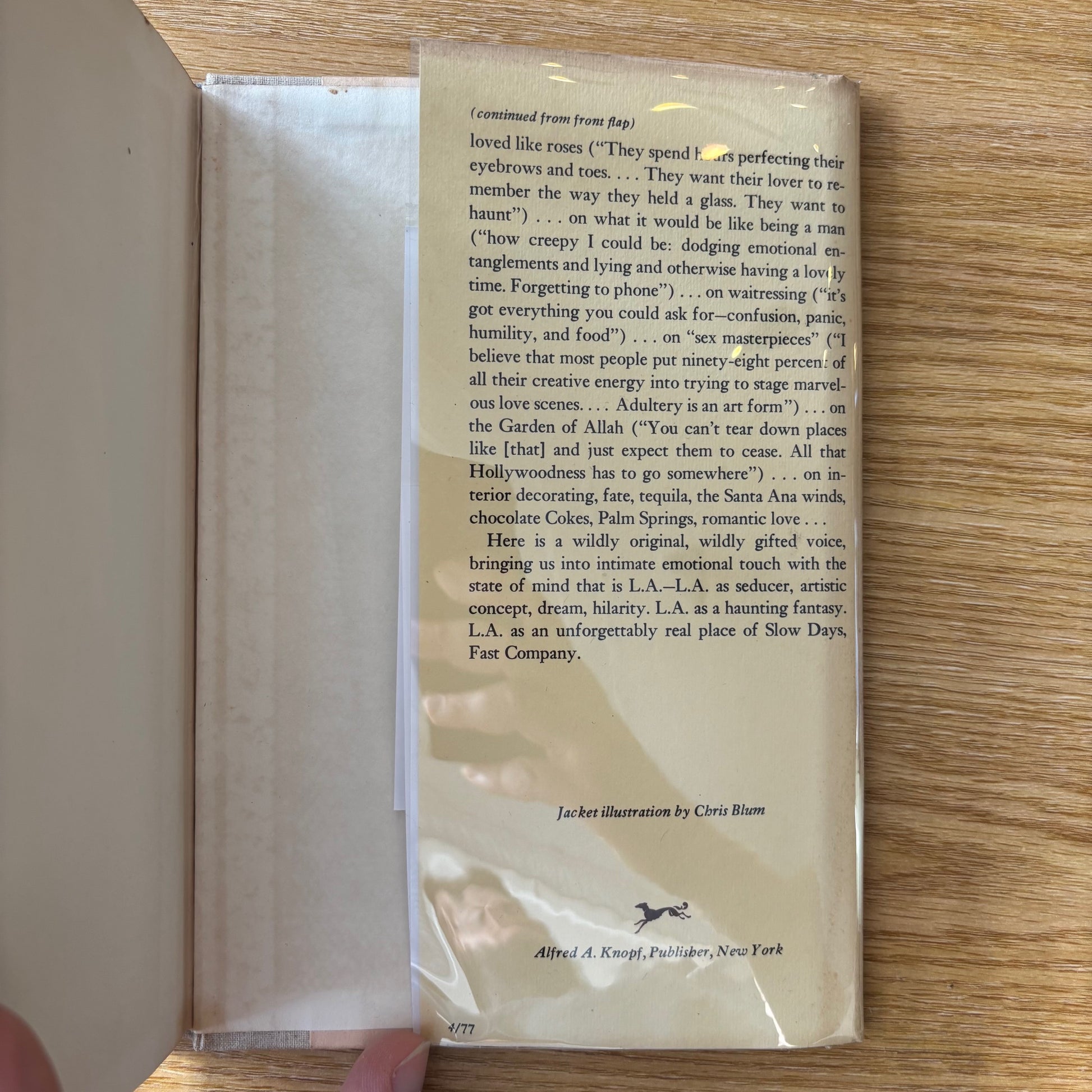 Eve Babitz, "Slow Days, Fast Company: The World, The Flesh, and L.A.," Alfred A. Knopf, 1977. First edition.