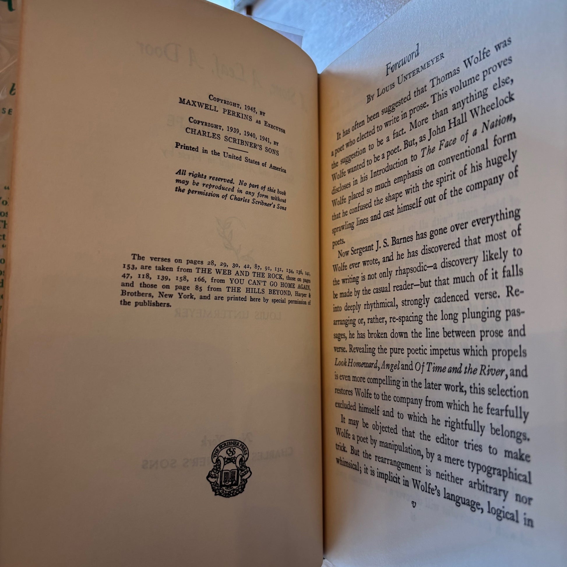 Thomas Wolfe, "A Stone, a Leaf, a Door," Scribners, 1945. No edition stated--presumed first, later printing.