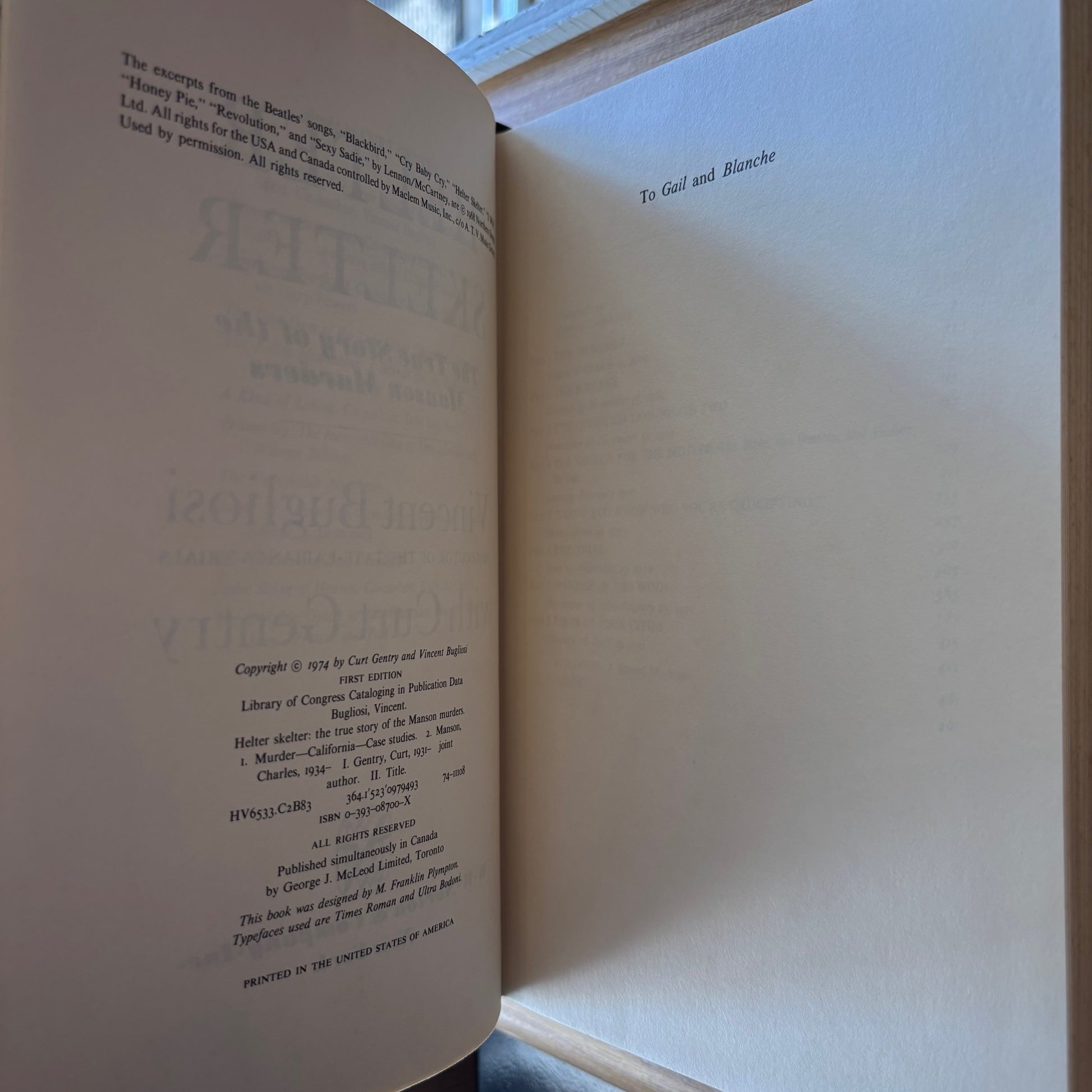 Vincent Bugliosi with Curt Gentry, "Helter Skelter: The True Story of the Manson Murders," W.W. Norton, 1974. BCE (despite "first edition" statement).