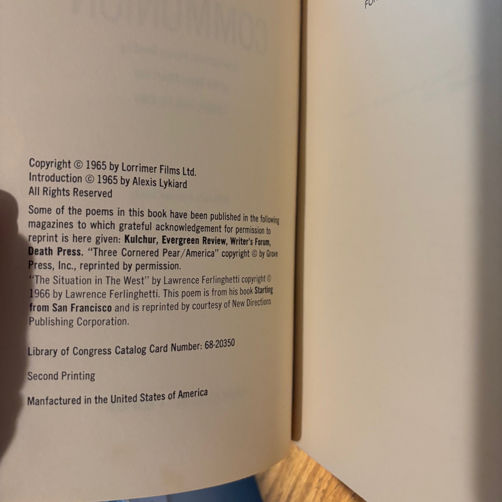"Wholly Communion: International Poetry Reading at the Royal Albert Hall," Grove Press, 1965. Introduction by Alexis Lykiard. First edition, second printing.